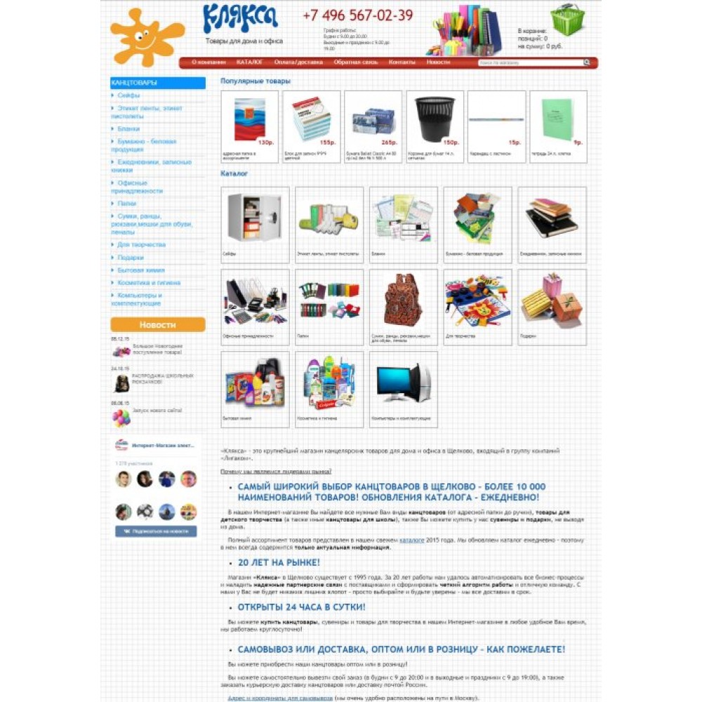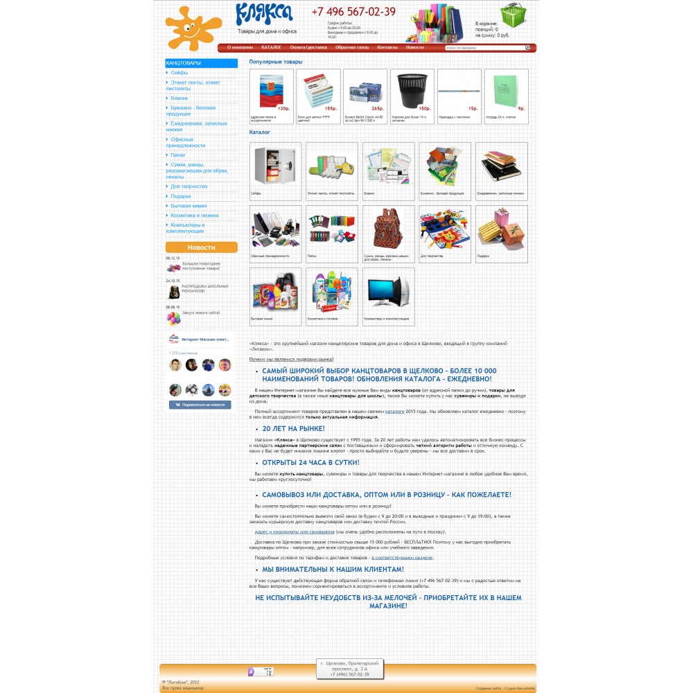 Интернет-магазин канцелярских товаров Клякса от веб-студии Максвебсайт г. Нижние Серги