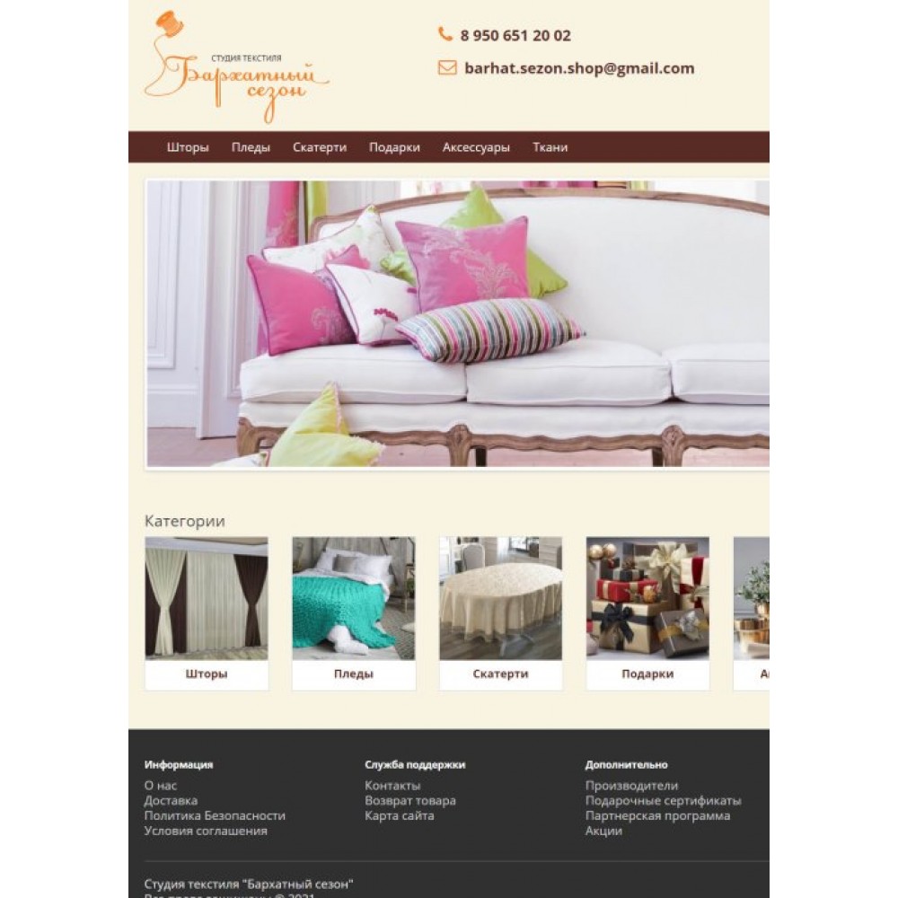Интернет-магазин студии текстиля "Бархатный сезон" от веб-студии Максвебсайт г. Нижние Серги