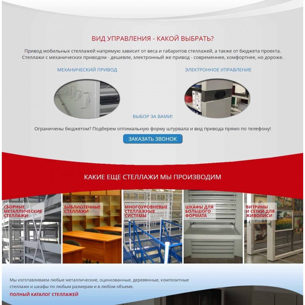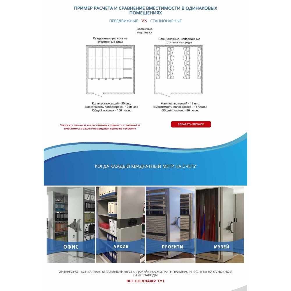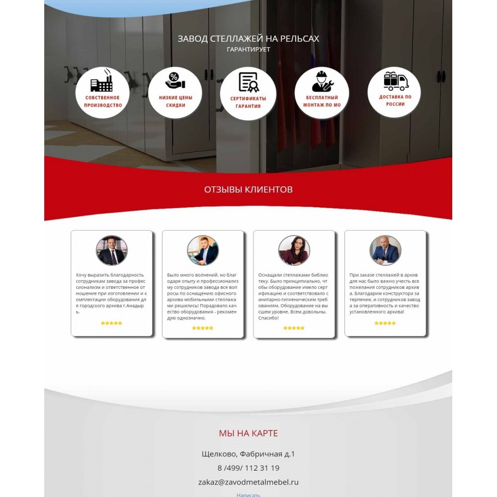 Рекламная страница (лендинг) завода мобильных стеллажей от веб-студии Максвебсайт г. Нижние Серги