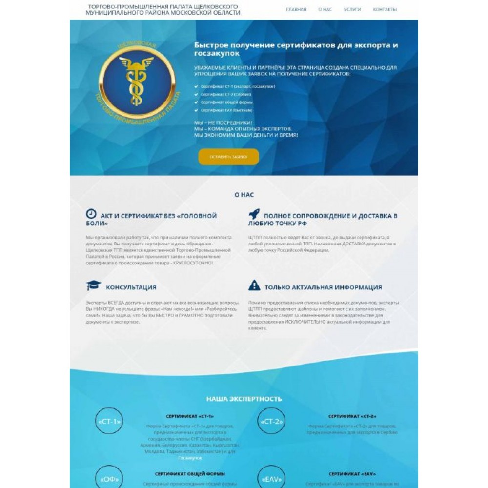 Сайт-лендинг Торгово-промышленной палаты от веб-студии Максвебсайт г. Нижние Серги