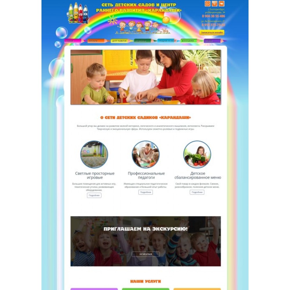 Сайт сети частных детских садиков Карандаши от веб-студии Максвебсайт г. Нижние Серги